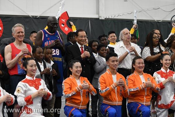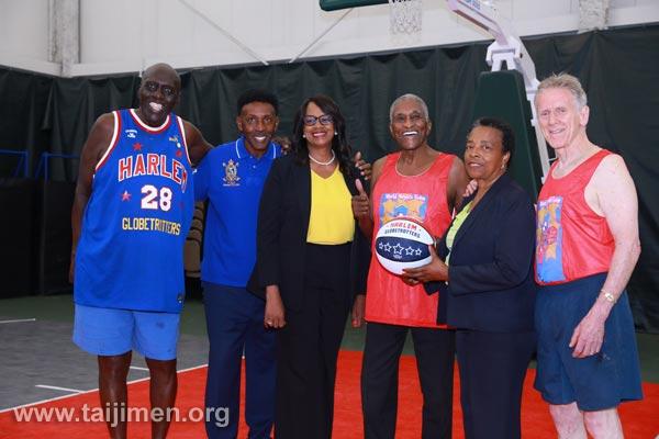 前哈林環球旅行者籃球隊、無毒世界基金會以及青少年進行了精彩歡樂的籃球賽。無毒世界基金會美洲分會會長Bernard Fialkoff博士提倡保護年輕人免受社區中有害藥物影響,希望大家都能在健康環境中茁壯自己。