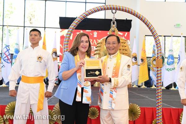 太極門神鼓陣,更以高規格的隆重古禮迎接來自各界的貴賓,歡喜氣氛如同過新年。應掌門人洪道子博士盛情邀請,Santa Clara市長Lisa Gillmor與副市長Kevin Park、Cupertino市長Hung Wei與前副市長/現任議員Liang Chao、Milpitas市長Carmen Montano、Palo Alto市長Lydia Kou與前市長/現任市議員Patrick Burt、Greer Stone等,也蒞臨現場祝賀;還有不遠千里而來的國際貴賓,包括吉里巴斯駐聯合國大使Teburoro Tito、賴索托前首相Pakalitha Bethuel Mosisili,
